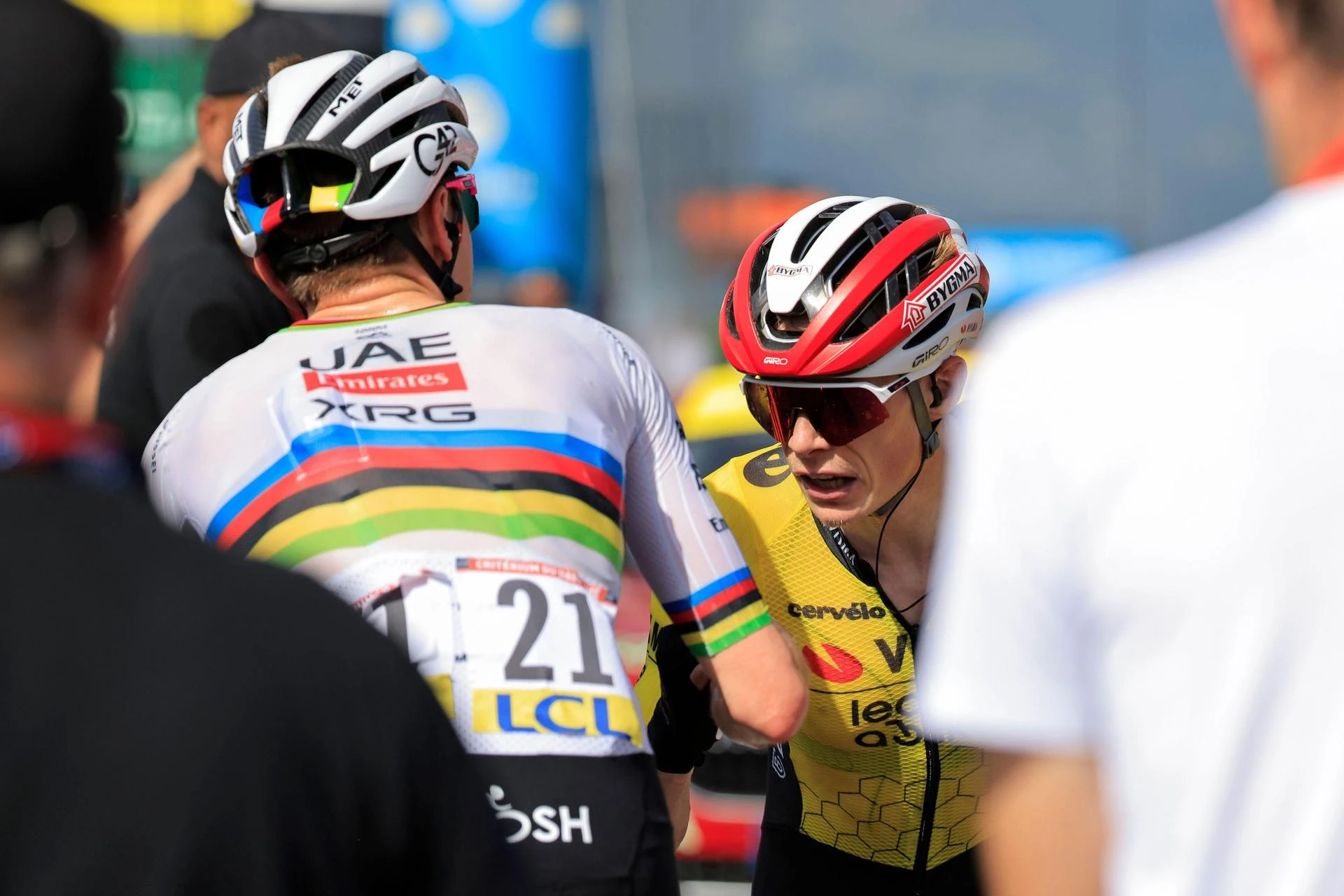 Denne gang trillede rivalerne ind over målstregen side om side. Pogacar viste sig tidligere i løbet som den stærkeste på de hårdeste stigninger, men Vingegaard var ikke langt efter sloveneren.