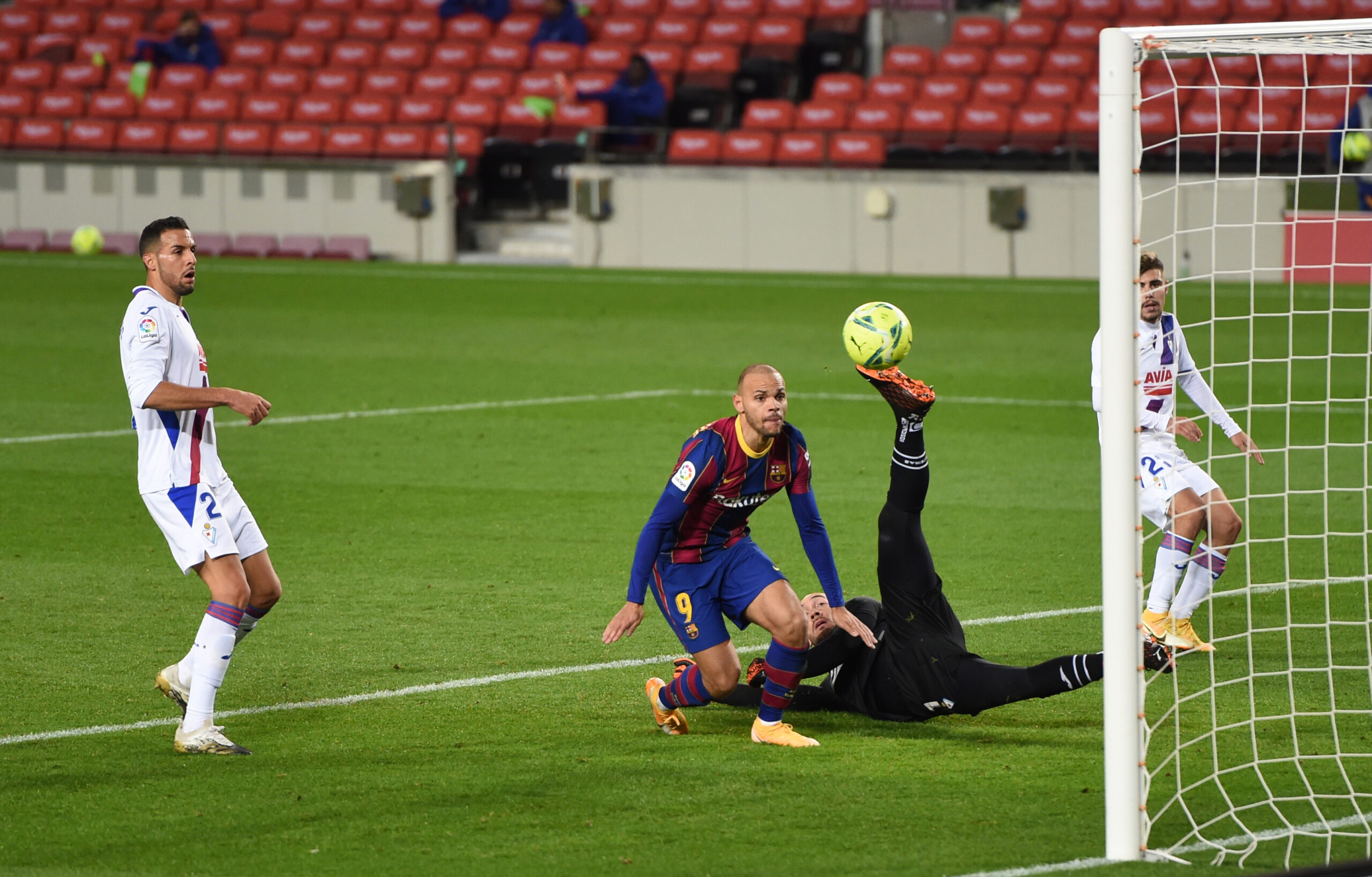 – Martin Braithwaite har ikke det store held med sine straffespark. I kampen mod Eibar på Camp Nou begik Bigas straffespark mod Araujo efter fem minutter, og to minutter senere var den danske angriber klar til at sparke. Hans skud gik dog forbi højre side af målet, lige forbi stolpen. Meget uheldigt for Barça-spilleren, som Ronald Koeman har vist så stor tillid indtil videre i denne sæson. Angriberen har ikke den store succes med sine straffespark, for i sine seneste fire forsøg har han ikke scoret et eneste.