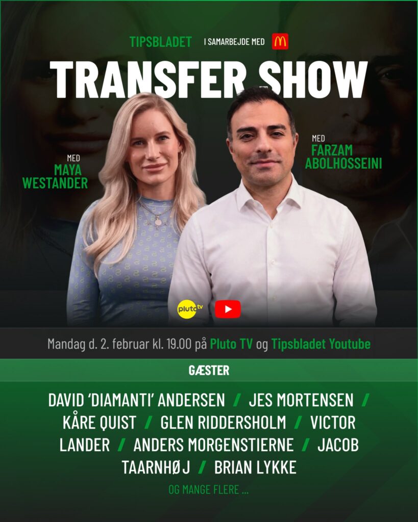 Samtidig vil transfergururen, Farzam Abolhosseini, være klar til at levere de bedste og største transfers i løbet af aftenen, hvor Tipsbladets redaktion også vil byde ind med, hvad der ellers rører sig i transferlandskabet og på aftenen.