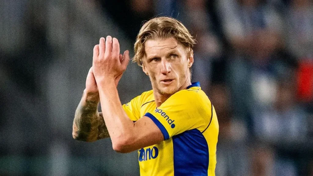 - EEN gang i 24/25-Bundesliga-sæsonen spillede han højre wingback, og gæt hvad han fik? Jep. Gult. Han spillede desuden højre wingback to gange i Europa League uden at få advarsel, men han spillede også en kamp som venstre wingback i EL, og dér så han gult. Dvs: to gule i fire kampe som wingback i 24/25